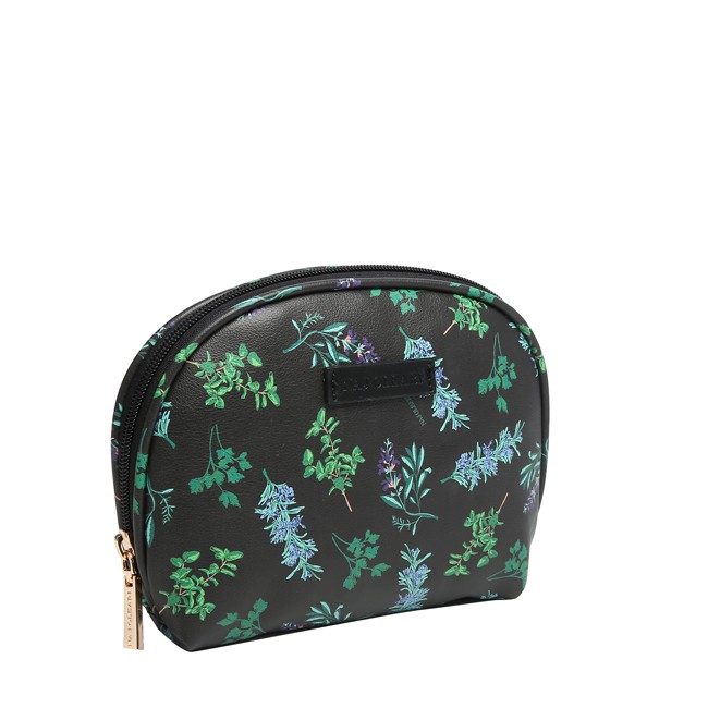 Naj-Oleari handbag pouch with grassy pattern and wide half-moon zip opening.